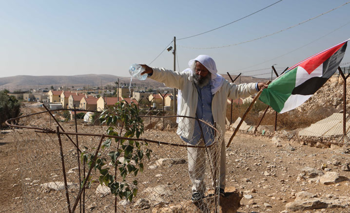 İşgal altındaki Batı Şeria'nın güneyindeki El Halil kentine bağlı Ummu'l Hayr köyünde yaşayan Süleyman el-Hezalin, ilerlemiş yaşına rağmen elinde Filistin bayrağı ve dilinden hiç düşürmediği tekbirle işgalci İsrail askerlerine meydan okuyor.