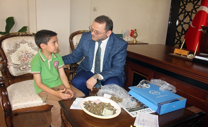 Akdeniz Zeki Sabah İlkokulu 1'inci sınıf öğrencisi Muhammet Yusuf, harçlıkları ile kumbarasında biriktirdiği 170.50 lirayı, Suriye’deki savaş mağduru çocuklara bayram harçlığı olarak gönderilmek üzere Türkiye Diyanet Vakfı Mersin Şubesine bağışladı.