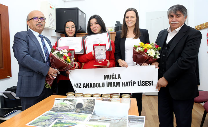 Muğla’da, Kız Anadolu İmam Hatip Lisesi Fen ve Sosyal Bilimler Proje Okulu öğrencileri, zeytin karasuyu ve mermer atıklarını kullanarak, arıtılmış su ve organik gübre elde etti.