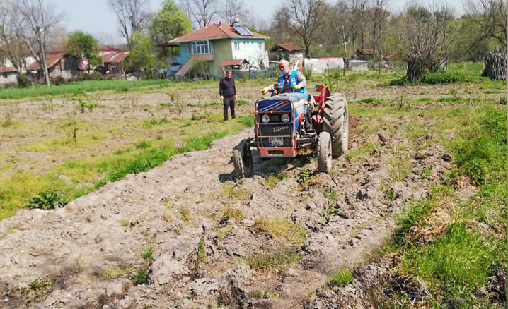 Sakarya Hendek İlçesi bünyesinde köylerde imam hatip olarak görev yapan Mehmet Küt ve Salih Davulcu, traktör ile tarla sürdü, tırpanla evlerin etrafındaki otları temizledi.