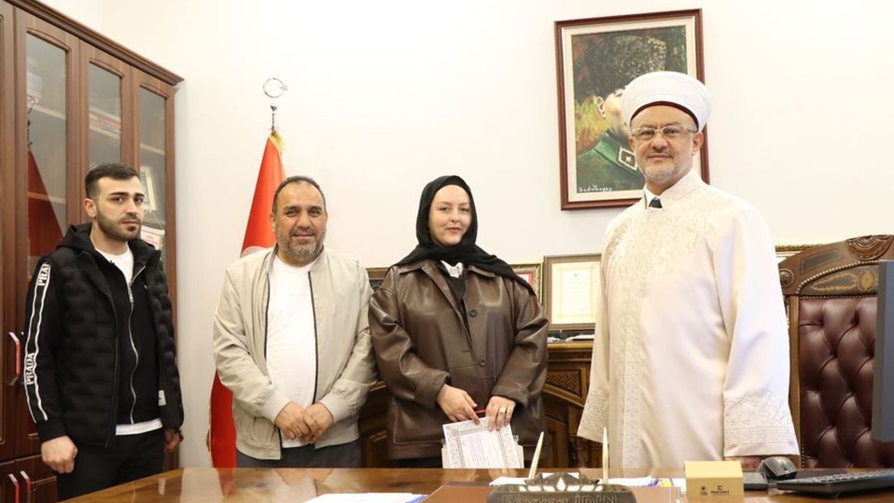 Program sonunda Müftü Feyyaz İdin tarafından ihtida belgesi, Kur’an-ı Kerim ve İslam’a dair temel bilgileri içeren çeşitli eserler hediye edildi.