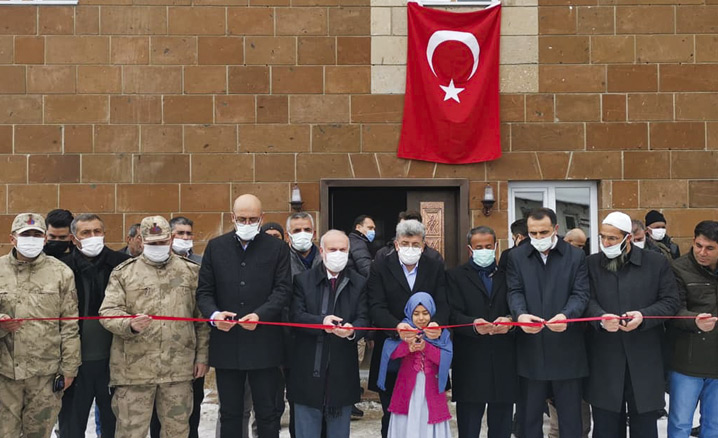 Kur'an-ı Kerim tilavetiyle başlayan programda açılışı yapılan cami hakkında bilgilendirmede bulunan İlçe Müftüsü Şehmus Bayler, "2021 yılının Nisan ayında yapımına başlanan bin 500 kişilik cami, 8 ay gibi kısa bir sürede tamamlanarak ibadete açıldı. Kadınlar için ayrı bir alan inşa edildi. Dış mimarisi Ahlat taşından oluşan cami, örme tekniğiyle depreme dayanaklı ve Selçuklu mimarisi örnek alınarak inşa edildi." dedi.