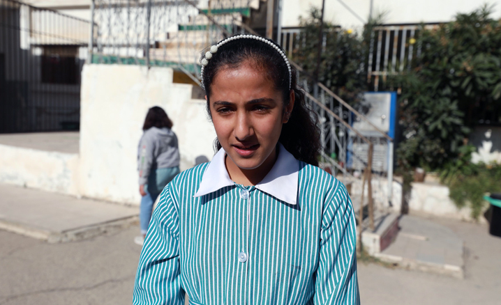 İlköğretim 7. sınıf öğrencisi Filistinli Sare Naim, geçen hafta yerleşimcilerin saldırıları sırasında bir işgalcilerin tüfeğinin başıyla kendisini darbettiğini ve omzunda morluklar oluştuğunu anlattı.