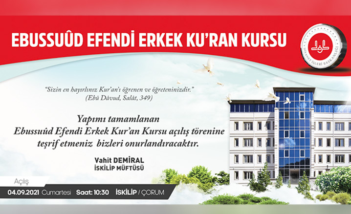 2016 yılında temeli atılan ve toplamda 120 öğrenci kapasitesi olan Ebussuud Efendi Erkek Kur’an Kursu, din görevlilerinin öncülüğünde hayırsever vatandaşların desteği ile tamamlandı.