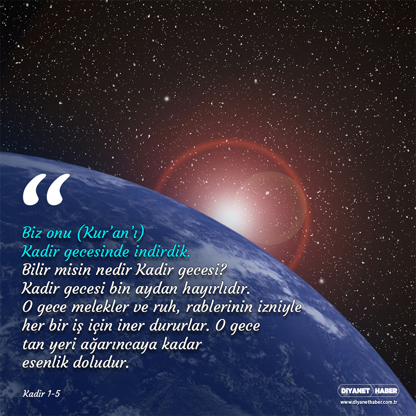 Gecelerin en feyizlisi Kadir gecesidir. Çünkü Kur’an-ı Kerim’de adı geçen tek gece Kadir gecesidir. İnsanlık için bir hidayet kaynağı olan son kitap Kur’an-ı Kerim bu gecede inmeye başlamıştır.