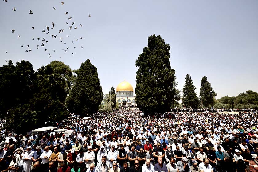 Kudüs'te binlerce Müslüman, ramazan ayının son cuma namazı için Mescid-i Aksa'ya akın etti. Bazı gönüllüler, sıcak havadan bunalan Filistinlileri serinletmek için su sıktı