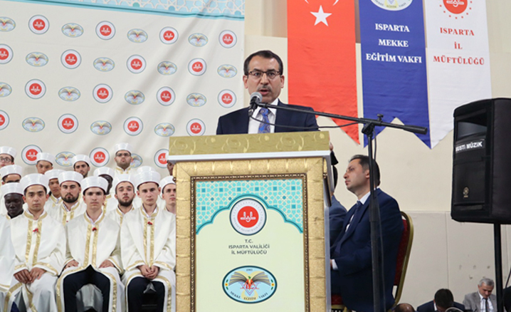 Hafızlık İcazet Merasiminde konuşan Isparta Valisi Aydın Baruş, "Sevgili Peygamberimiz ‘Sizin en hayırlınız, Kur'an-ı öğrenen ve öğretendir.’ buyuruyor. Kur'an-ı öğrenmek ve onu öğretmek için bu millet her ferdiyle tarih boyunca duyarlı oldu. Onu gelecek nesillerine öğretmek için çaba sarf etti. İşte bugün beraber bulunduğumuz hafız kardeşlerimiz de bu bilincin bu şuurun neticesi olarak Kur'an-ı Kerim'i hıfzettiler ve bundan sonra insanlığa ve inananlara hizmet için yola koyulacaklar." dedi.