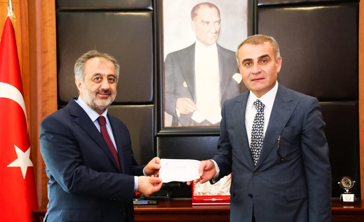 Başsavcı Fidan’ın kurban vekaletini Türkiye Diyanet Vakfı adına kabul eden İl Müftüsü Maşalı, Fidan'a teşekkür ederek bağış makbuzunu takdim etti.