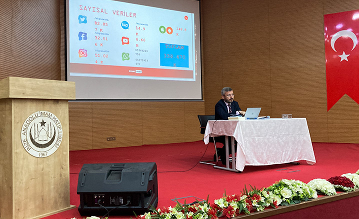 Seminere Diyanet Haber Genel Koordinatörü Adil Elzerey ile Diyanet Haber Editörü Ramazan Arslantaş ve Din Hizmetleri Uzmanı Hüsne Yılmaz konuşmacı olarak katıldı.