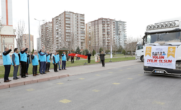 Yardımları taşıyan tırların uğurlanması amacıyla tören düzenlendi.