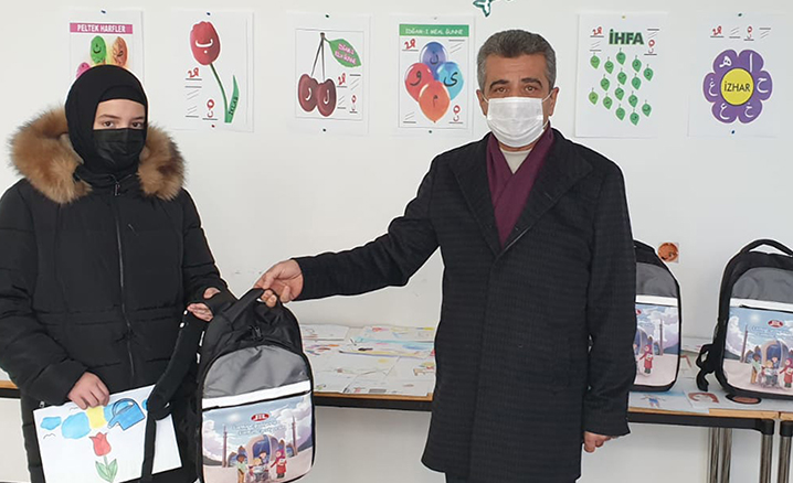 Törende, dereceye giren öğrencilere sırt çantası ve kırtasiye ürünlerinden oluşan hediyeler verildi.