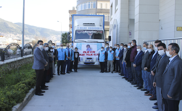 Hatay İl Müftülüğü ile Türkiye Diyanet Vakfı Hatay Şubesi iş birliğinde hayırseverlerin desteğiyle hazırlanan yardım malzemeleri, ihtiyaç sahibi ailelere ulaştırılmak üzere düzenlenen törenle İdlib’e uğurlandı.