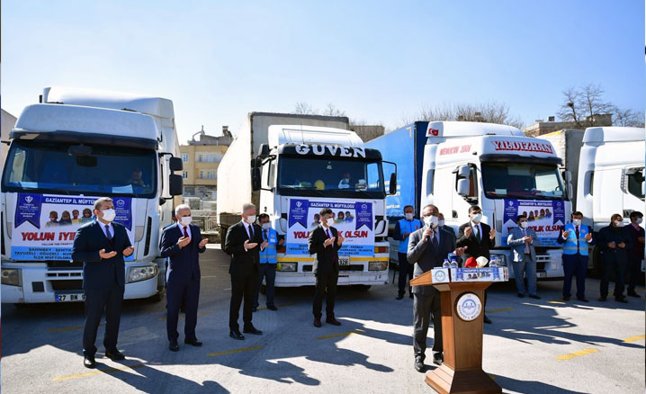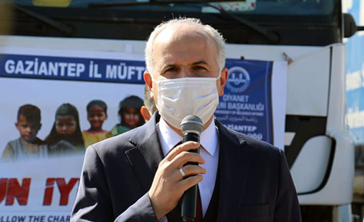 Kur'an-ı Kerim tilavetiyle başlayan törende konuşan Gaziantep İl Müftüsü Dr. Hüseyin Hazırlar, "Kışın gelmesiyle birlikte kamplarda yaşam daha da zor hale geldi. Ama bugün içimizi ısıtacak hayırlı bir iş için bir araya geldik. İnşallah dualarla tırlarımızı güvenli bölgelerdeki mazlum, mağdur ve ihtiyaç sahibi kardeşlerimize ulaştıracağız. Yıllardır Suriyeli komşularına kucak açan, mülteciye sığınak, muhacire ensar olan milletimiz her türlü takdiri hak ediyor. Bu milletin bir ferdi olmaktan gurur ve iftihar duyuyoruz." dedi.