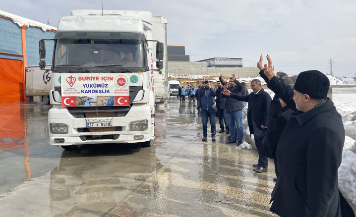 Uğurlama töreninde konuşan İl Müftüsü Dr. Hüseyin Hazırlar, "Tarih boyunca mazlumun elinden tutmuş, mağdura kol kanat germiş bir milletiz. Tarih boyunca bu özelliğimizle var oluyoruz. Bugün Gaziantep'ten uzak diyarlardaki ama kardeşimiz olarak tarif ettiğimiz insanlara anlamlı bir hediye gönderiyoruz. Yardım tırlarımızda Afganistan'a 60 ton gıda ürünü, hemen yanı başımızdaki Suriyeli kardeşlerimize de kömür başta olmak üzere gıda, temizlik ve soba yüklü 7 tır yardım malzemesi gönderiyoruz. Kardeşlerimize yardımda bulunmak, yardım taleplerine cevap verebilmek bir mümin olarak sorumluluğumuzdur." dedi.