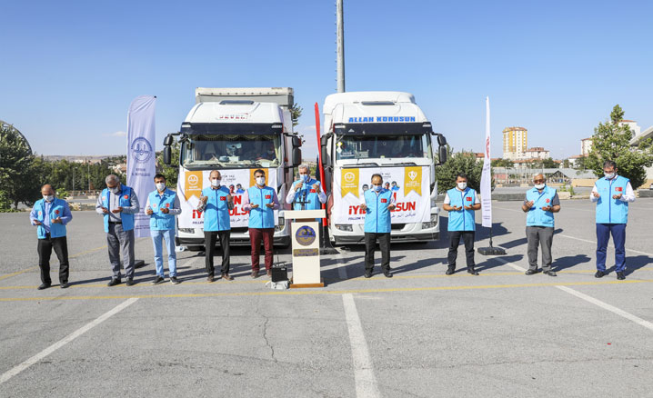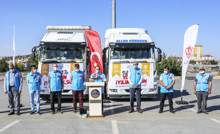 "Şimdi Yaraları Sarma Zamanı, Halep’te İnsanlık Ölmesin, Yükümüz Kardeşlik ve Yolun İyilik Olsun kampanyaları ile Kayseri'mizden Mart 2016’dan bugüne kadar hayırseverlerimizin yardım ve katkılarıyla 626 tır yardım malzemesini Suriyeli kardeşlerimizin yaralarını sarmak ve ihtiyaçlarını gidermek için bölgeye gönderdik. 24 Ağustos 2020 tarihinde gönderdiğimiz 4 tır un ve bugün göndereceğimiz 2 tır un ile beraber toplamda 6 tırdan oluşan yardım malzemelerini Allah’ın izniyle göndermiş oluyoruz. Allah bütün hayırseverlerimizden razı olsun." dedi.