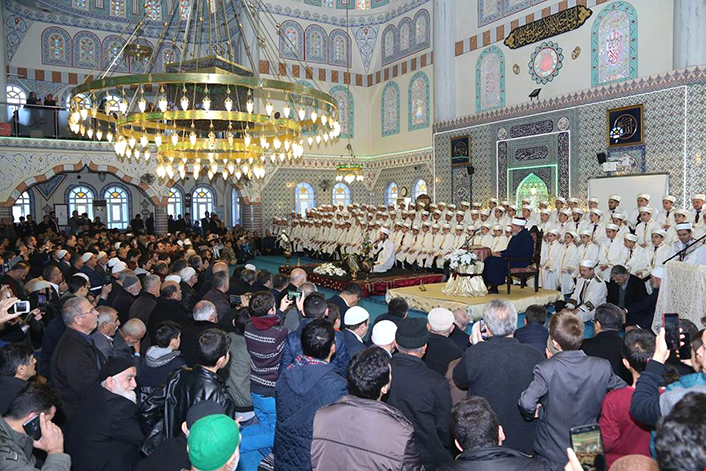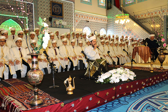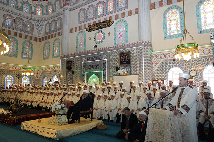 Konuşmaların ardından hafızlık icazetlerini alan öğrenciler gruplar halinde Kur’an-ı Kerim okudu.