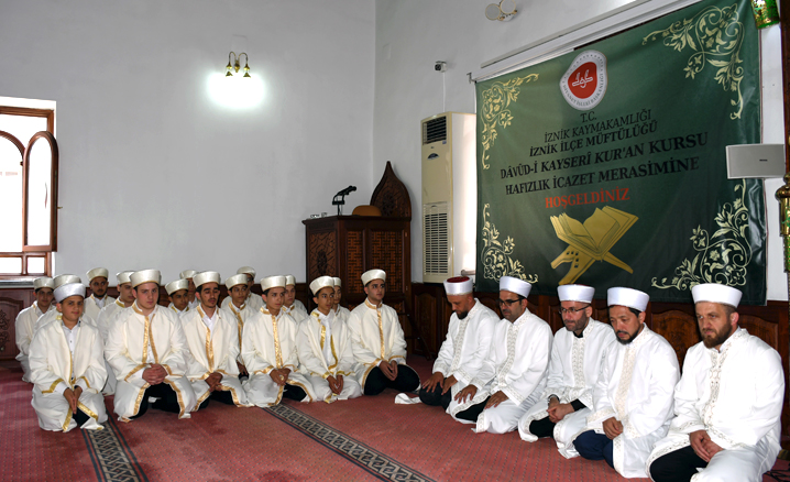 İznik İlçe Müftülüğe bağlı Davud-i Kayser Kur’an Kursu’nda hafızlık eğitimini tamamlayarak Diyanet İşleri Başkanlığınca uygulanan Hafızlık Tespit Sınavı’nda başarılı olan 18 öğrenciye düzenlenen törenle hafızlık belgeleri takdim edildi.