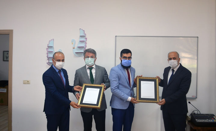 Tören sonunda Biçer ve İncekara’ya Braille alfabesi ile ayet-i kerime yazılan tablo hediye edildi.