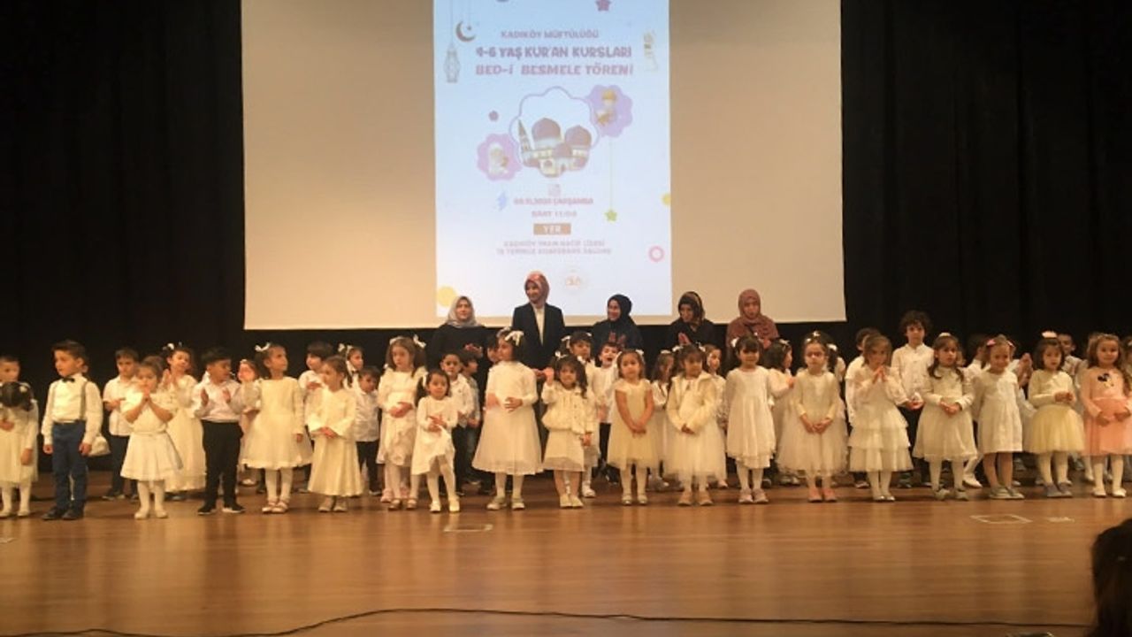 Kadıköy Anadolu İmam Hatip Lisesi 15 Temmuz Şehitleri Konferans salonunda düzenlenen törene Kadıköy İlçe Müftülüğüne bağlı 4-6 yaş grubu Kur'an kurslarında öğrenim gören öğrenciler katıldı.