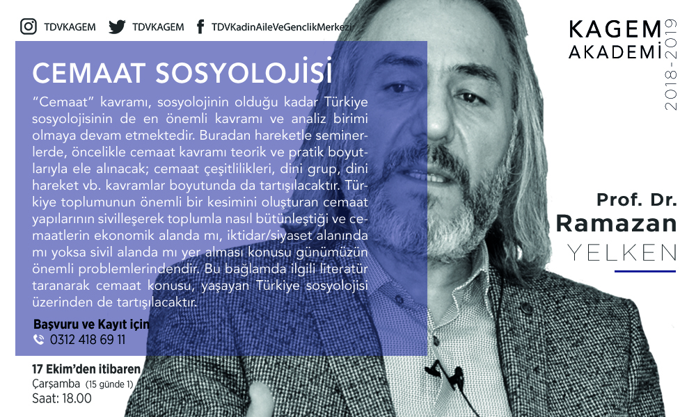 “Cemaat” kavramı, sosyolojinin olduğu kadar Türkiye sosyolojisinin de en önemli kavramı ve analiz birimi olmaya devam etmektedir. Buradan hareketle seminerlerde, öncelikle cemaat kavramı teorik ve pratik boyutlarıyla ele alınacak; cemaat çeşitlilikleri, dini grup, dini hareket vb. kavramlar boyutunda da tartışılacaktır. Türkiye toplumunun önemli bir kesimini oluşturan cemaat yapılarının sivilleşerek toplumla nasıl bütünleştiği ve cemaatlerin ekonomik alanda mı, iktidar/siyaset alanında mı yoksa sivil alanda mı yer alması konusu günümüzün önemli problemlerindendir. Bu bağlamda ilgili literatür taranarak cemaat konusu, yaşayan Türkiye sosyolojisi üzerinden de tartışılacaktır.