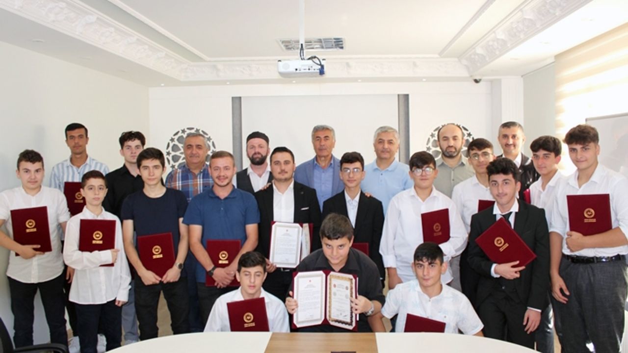 Kur’an kurslarında hafızlık eğitimini tamamlayarak Diyanet İşleri Başkanlığınca gerçekleştirilen Hafızlık Tespit Sınavı’nda başarılı olan öğrenciler için "Belge Takdim Töreni" düzenlendi.