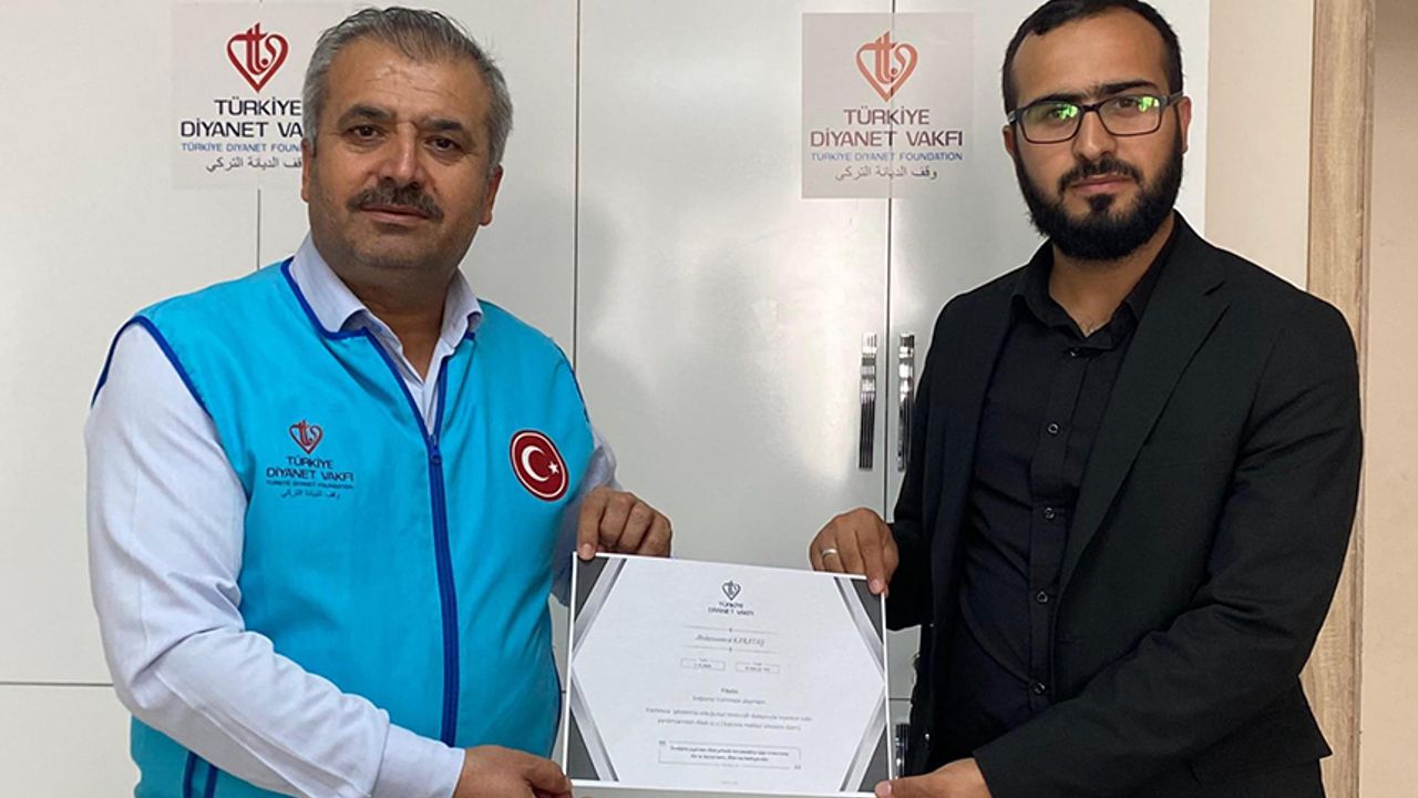Elde edilen bağış din görevlisi Abdussamed Karataş tarafından TDV Kahta Şubesine teslim edildi.