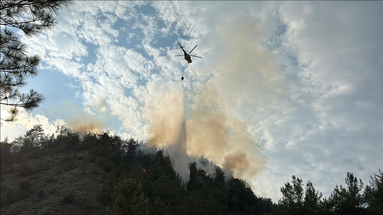Yüksek ve eğimli bölgede de etkili olan alevlere 3 helikopter, 58 araç, 164 personelle müdahale edildi.