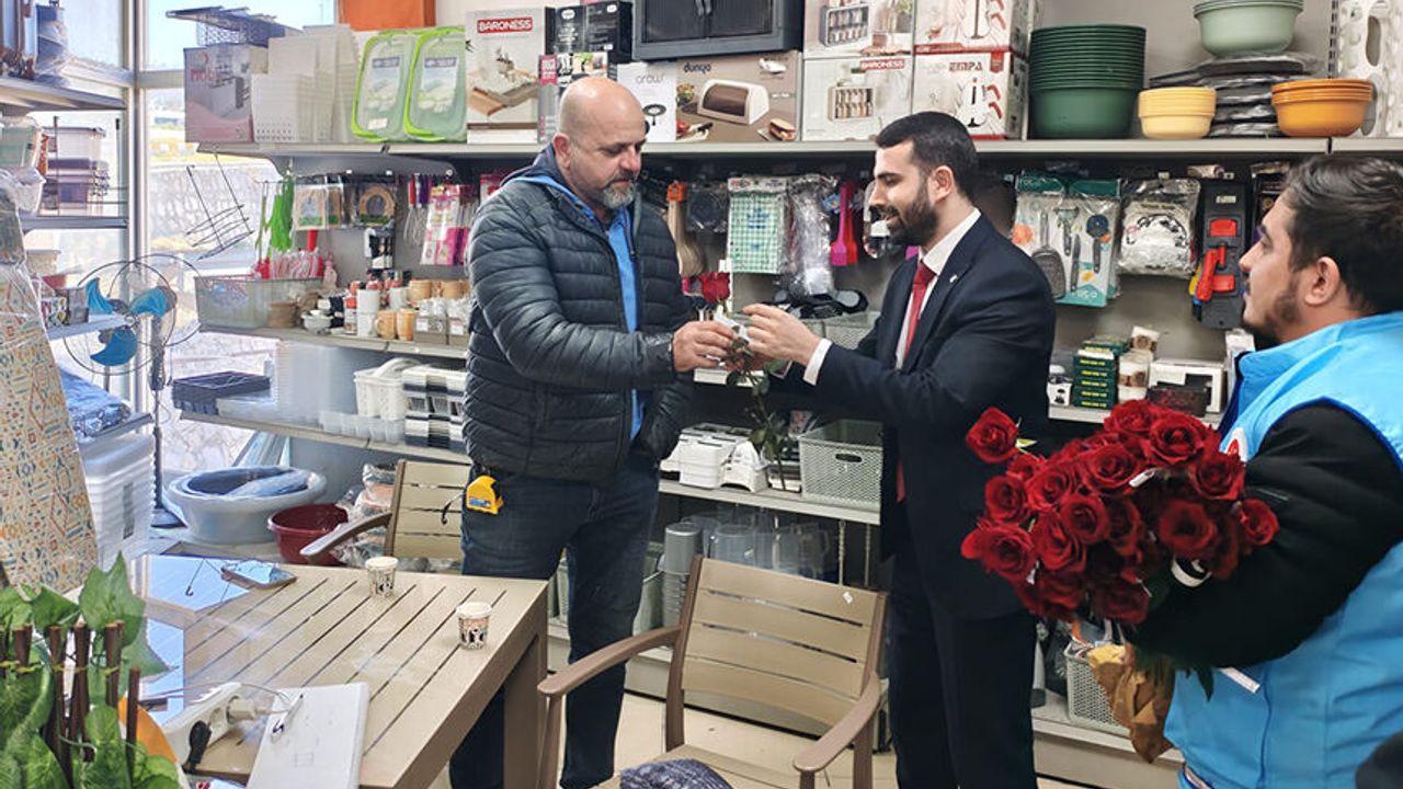 Resmi kurum ve kuruluşlar başta olmak üzere esnaf ve vatandaşlar ziyaret eden ekipler, dallarında ayetlerin iliştirildiği gülleri hediye ederek ramazan tebrikinde bulundu.