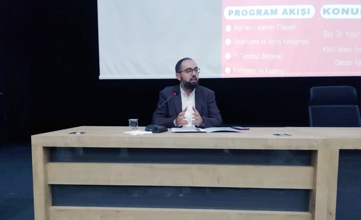 Piri Reis Kültür Merkezi Konferans Salonu'nda gerçekleştirilen programa Karamanoğlu Mehmetbey Üniversitesi İslami İlimler Fakültesi Dekan Yardımcısı Doç. Dr. Yusuf Erdem Gezgin konuşmacı olarak katıldı.