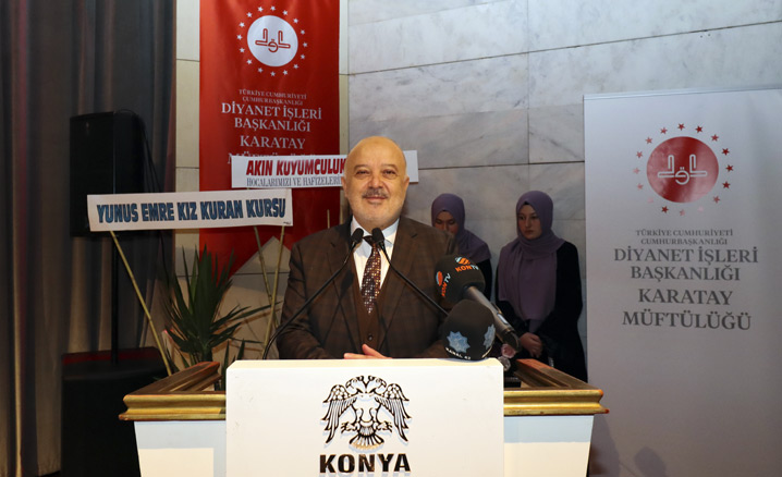 Diyanet İşleri Başkanlığının en önemli hizmetlerinden birisinin Kur'an eğitimi olduğunu belirten İmamoğlu, "Konyamız Rabbimizin bu hidayet rehberi Kur'an'ı okuma, okutma hususunda her zaman liderdir. Karatay ilçemizde 13 tane yatılı Kur'an kursumuz bulunuyor. Buralarda yüzlerce hafızımız yetişiyor. Ne mutlu bu hafızlara, ne mutlu bu hafızlara, ne mutlu bunların anne babalarına, ne mutlu bu hafızların yetişmesi için malını mülkünü sarf eden hayırsever kardeşlerimize, ne mutlu bu kursları yapan ve yaptıran hayırseverlerimize." değerlendirmesinde bulundu.
