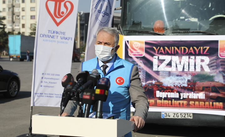 Diyanet İşleri Başkanlığı ile Türkiye Diyanet Vakfı iş birliğinde sürdürülen "Şimdi Yaraları Sarma Zamanı" yardım kampanyası kapsamında, Kayseri İl Müftülüğü ve Türkiye Diyanet Vakfı Kayseri Şubesi koordinesinde "Yanındayız İzmir" sloganıyla bir tır dolusu insani yardım malzemesi hazırlandı.