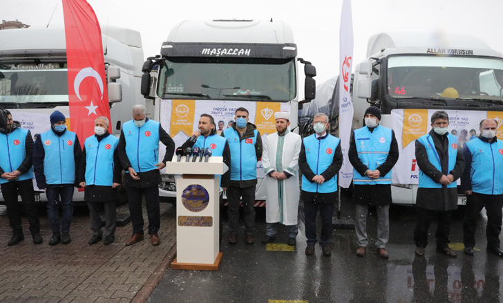Diyanet İşleri Başkanlığı ile Türkiye Diyanet Vakfı (TDV) iş birliğinde sürdürülen "Yolumuz İyilik Olsun" yardım kampanyası kapsamında, Kayseri İl Müftülüğü ve Türkiye Diyanet Vakfı Kayseri Şubesi koordinesinde "Yükümüz Kardeşlik" sloganıyla 3 tır dolusu insani yardım malzemesi hazırlandı.