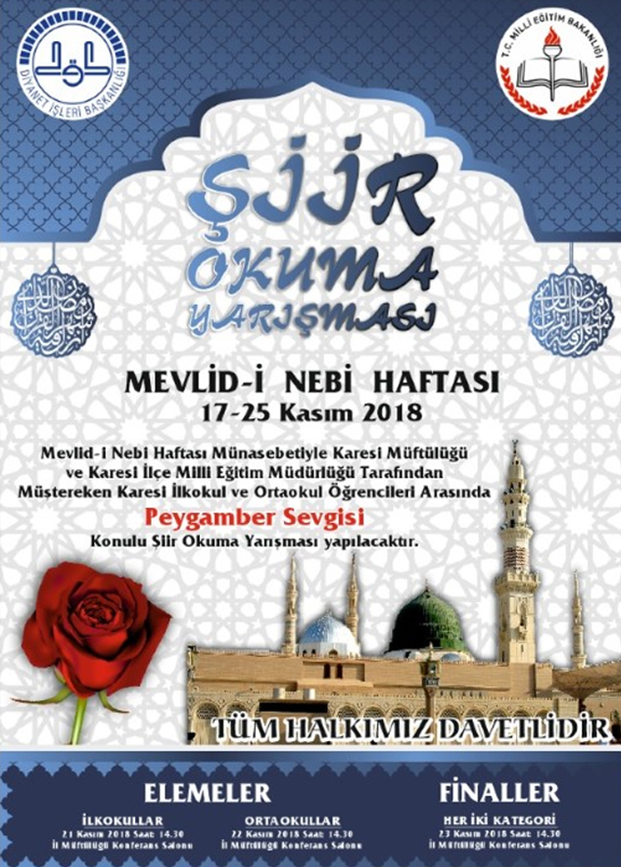Karesi Müftülüğü ve Karesi Milli Eğitim Müdürlüğü iş birliğinde Mevlid-i Nebi Haftası etkinlikleri kapsamında şiir yarşması düzenlenecek.