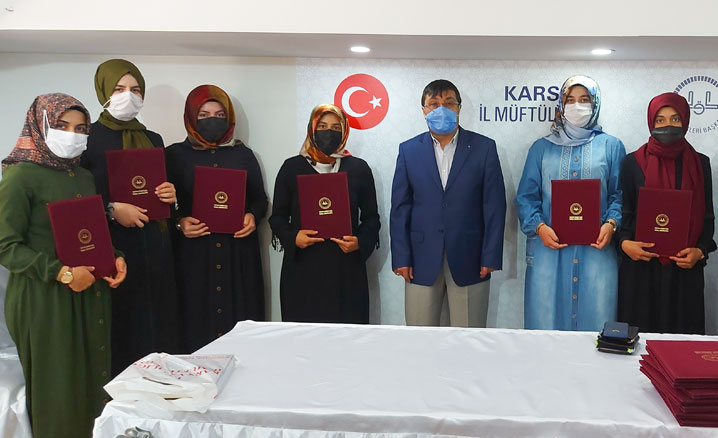 Kars İl Müftülüğüne bağlı Kur’an kurslarında hafızlık eğitimini tamamlayarak mezun olan 27 öğrenci, hafızlık belgelerini İl Müftüsü Yusuf Eviş'in elinden aldı.