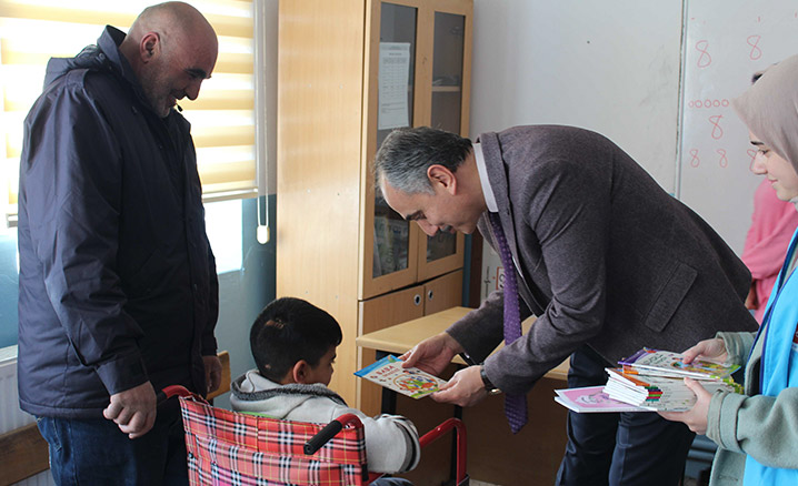 Kars İl Müftüsü Hamza Bayram ve İl Milli Eğitim Müdür Vekili Osman Urlunç ile beraberindekiler, sınıfları gezerek öğrencilerle vakit geçirdi ve öğrencilere kitap hediye etti.
