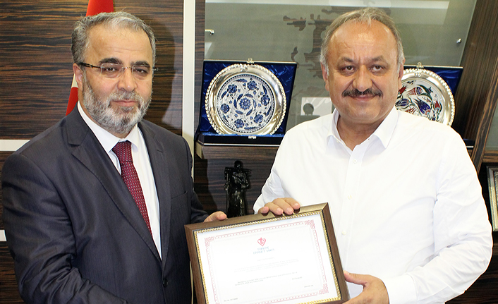 Yaptığı bağıştan dolayı Diyanet işleri Başkan Yardımcısı Burhan İşliyen tarafından Belediye Başkanı Tahsin Babaş a teşekkür belgesi takdim edildi.