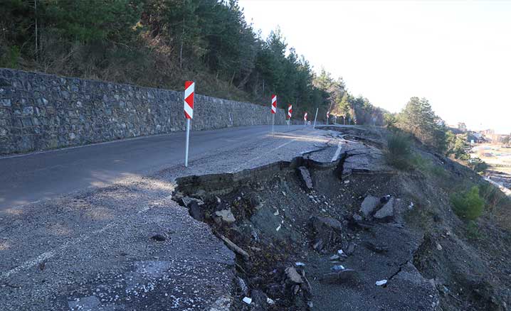 Bölgedeki karın erimeye başlamasıyla İnebolu-Abana kara yolunda yamaçlarda yer yer çökme heyelan meydana geldi.