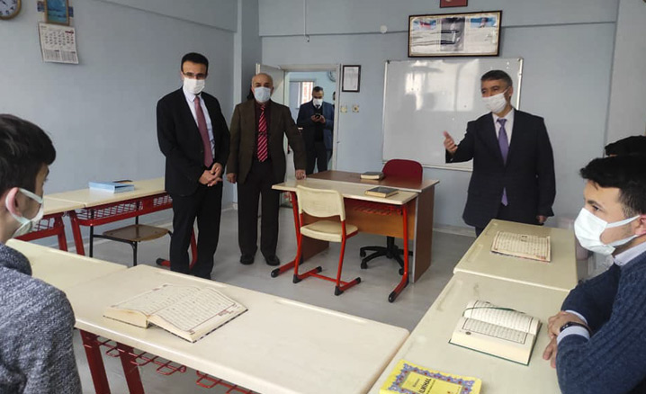 İlçe Müftüsü Dr. Eyyup Aydın'dan Kur'an kursları hakkında bilgi alan Kaymakam Akpay, öğrencilerle bir süre sohbet ederek başarı temennisinde bulundu.