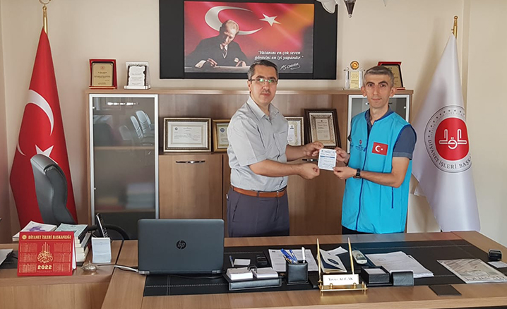 Sapanca Müftüsü Koçak, Kaymakam Canpolat’a desteklerinden dolayı teşekkür ederek bağış makbuzunu takdim etti.