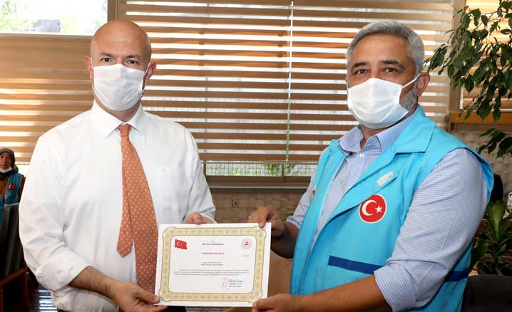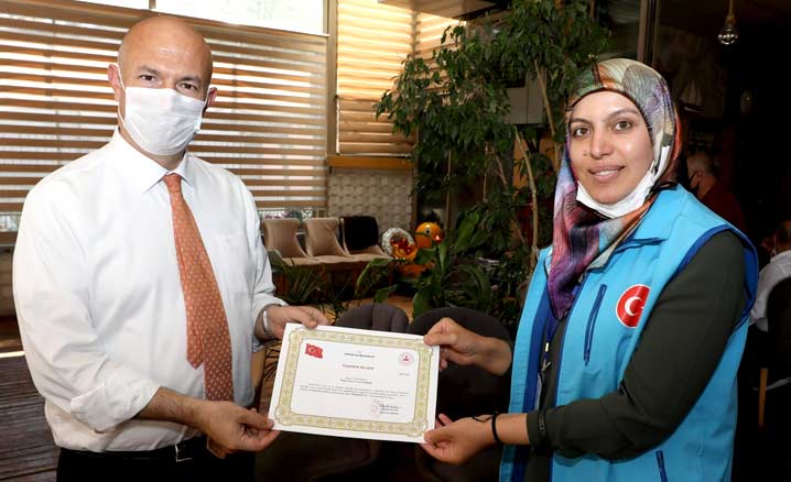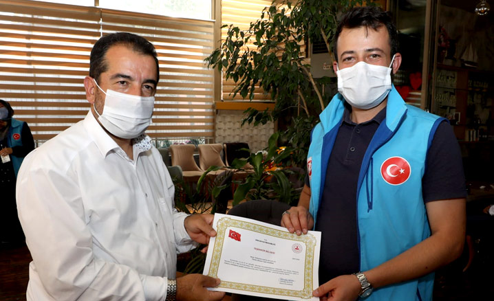 Tüm dünyada etkili olan ve Türkiye'de binlerce vatandaşın vefatına neden olan koronavirüs (covid-19) salgını sürecinde kapı kapı hizmet götüren 130 din görevlilisi ile 20 Türkiye Diyanet Vakfı personeline Sincan Kaymakamlığı tarafından Başarı Belgesi verildi.