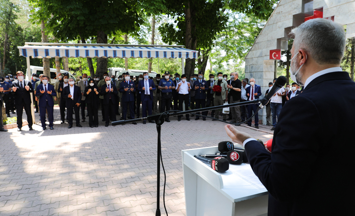 İl Müftüsü Şahin Güven, şehitler için okunan Kur’an-ı Kerim ve Mevlid-i Şerif’in duasını yaptı.