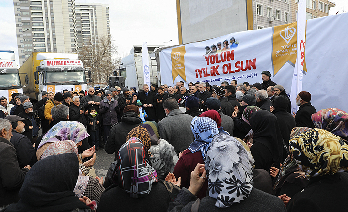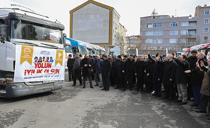 Yardım tırlarının Suriye’ye gönderilmesi amacıyla bir tören düzenlendi.