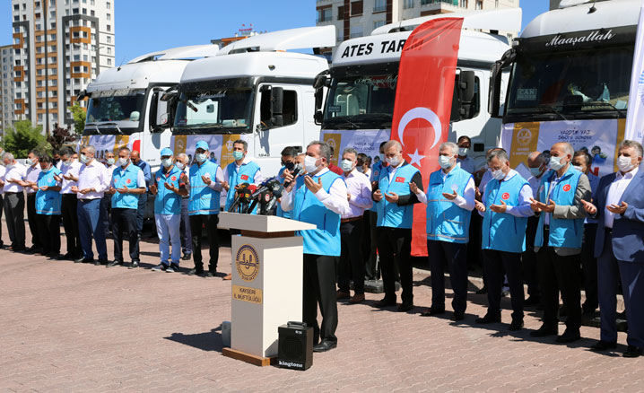 Başkanlık Müftüsü Yakup Öztürk’ün yaptığı duanın ardından yardımları taşıyan tırlar, Cilvegözü Sınır Kapısı’na doğru yola çıktı.
