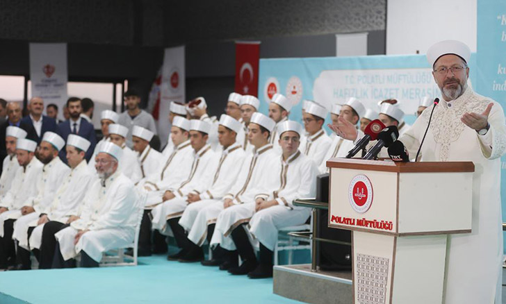 Başkan Erbaş, hafızlığın öneminden bahsederek, "Hafızlarımızın ömrü boyunca yapacakları iş, imkanları doğrultusunda salih amel işlemek ve yapacakları vazifelerinde insanlara ibadetleri, inançları, ahlaki konularda muamelat konusunda destek olmak, yardımcı olmak, hakkı tavsiye etmek. Bütün hafızlar Peygamber Efendimizin varisleridir." diye konuştu.