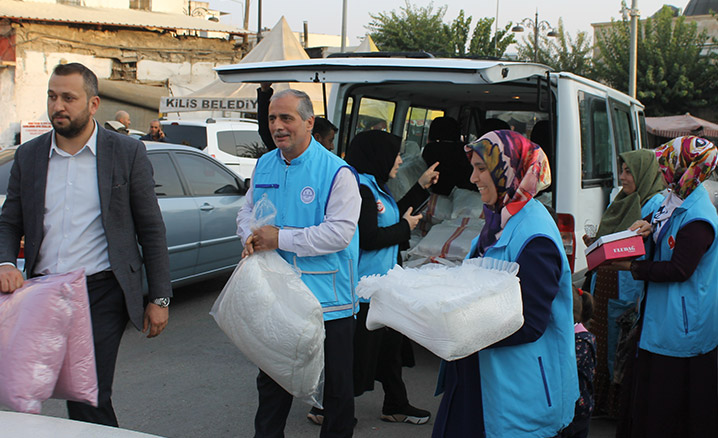 Kilis Müftüsü Abdurrahman Şahin rehberliğinde yardım faaliyetlerinde bulunduklarını dile getiren TDV KAGEM Kilis Kadın Kolları Başkanı Feyza Akkuş ise "Hayata dokunan her alanda ihtiyaç sahibi evlilik hazırlığı yapan nişanlı kızlarımıza ve yeni doğum yapmış annelerimize TDV-KAGEM olarak Kur’an kursuna gelen öğrenci ve gönüllü ekibimiz ile birlikte yapmış olduğumuz çalışmalar kapsamında toplanan nakdi ve ayni yardımlar ulaştırıyoruz. Yeni bir hayata adım atan kardeşlerimizin yanında olarak gönüllerine dokunuyoruz." diye konuştu.