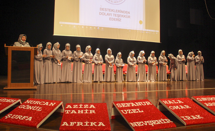 Kırşehir İl Müftülüğüne bağlı Merkez Hatice Hatun Yatılı Kız Kur’an Kursu’nda hafızlık eğitimini tamamlayan öğrenciler için “Taç Giyme ve Hafızlık Belge Takdim Töreni” düzenlendi.