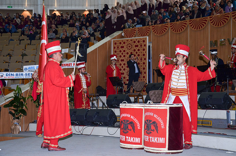Mehteran eşliğinde hafızlar sahnede seremoni gerçekleştirdi