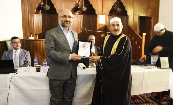 Danimarka İslam Birliği Başkanı Dr. Muhammed Fuad Al Barazi, katılımcılara plaket takdim etti.