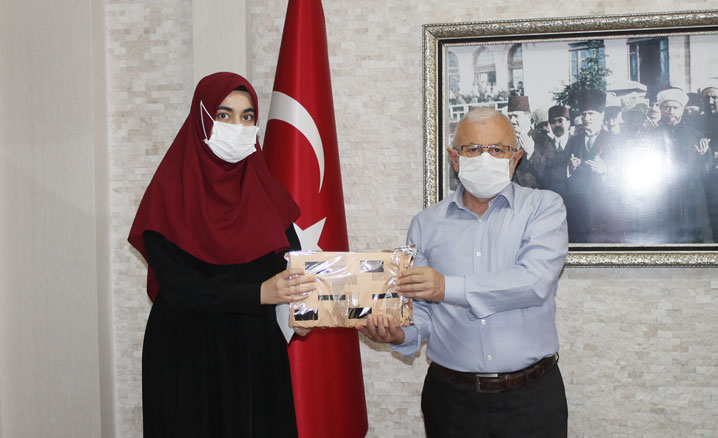 Müftü Akkuş, yarışmada dereceye giren öğrencilere ödüllerini takdim etti.