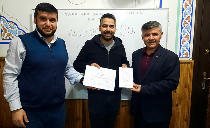 Bu kapsamda Toparlar Merkez Camii ve Pınar Akyaka Camii'nde düzenlenen derslerde Kur'an-ı Kerim öğrenen vatandaşlara belge verildi.
